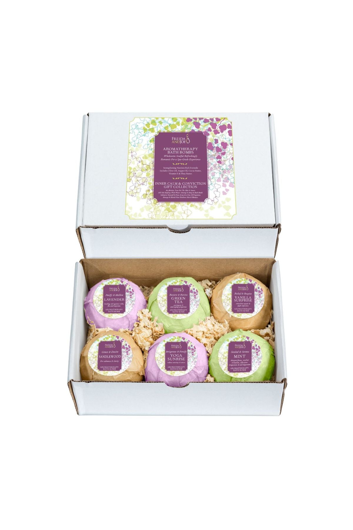 Transform your bath into a place of sanctuary and contemplation with this gorgeous-smelling collection of scented bath bombs from Freida and Joe which also offers powerful aromatherapy for the ultimate in relaxation and rejuvenation! Each bath bomb set features the following: